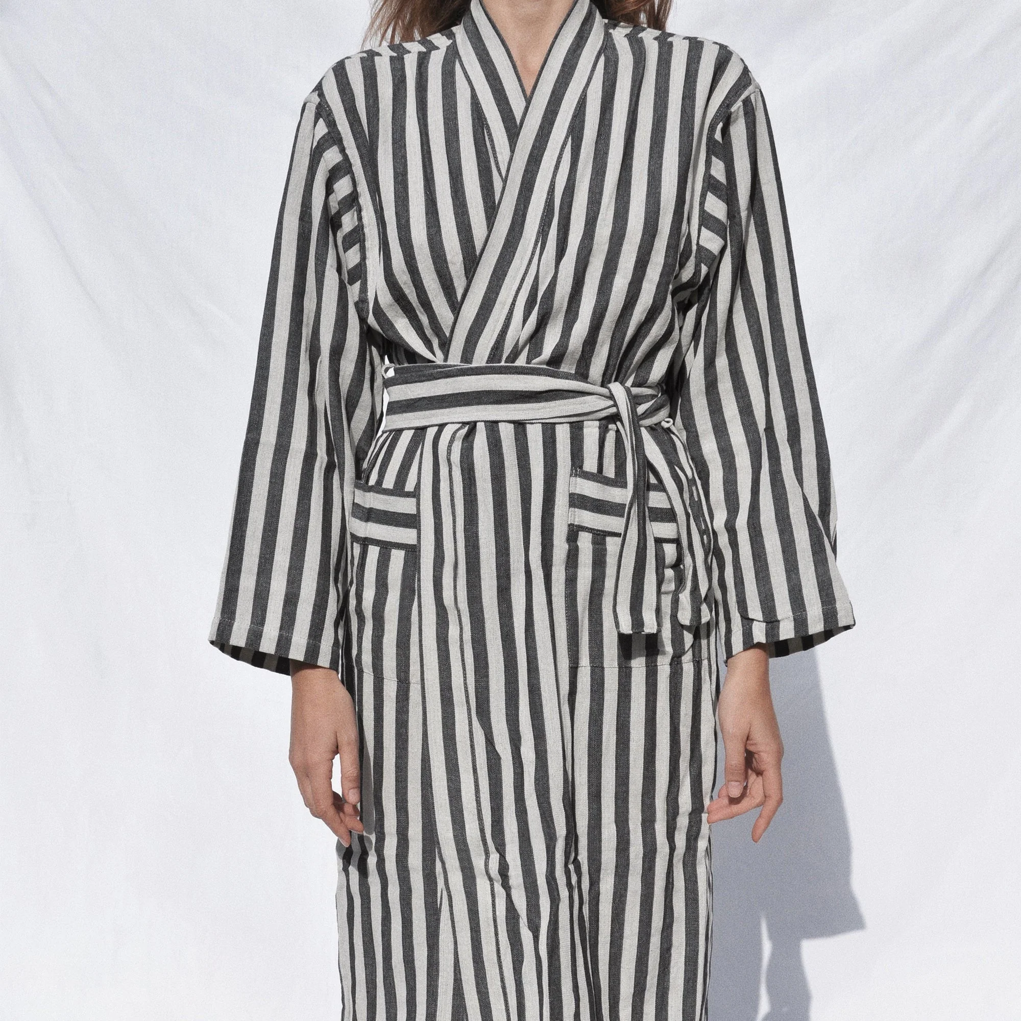Turkish Linen Robe | Black Stripe