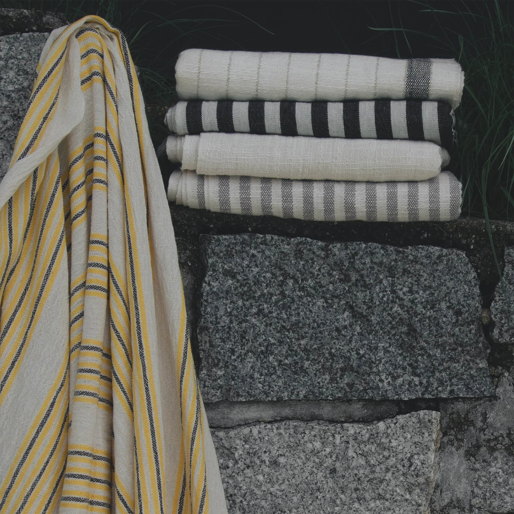 These towels are made from a luxurious and fast-drying organic cotton and linen blend. They are handwoven on century-old looms and made to last a lifetime.